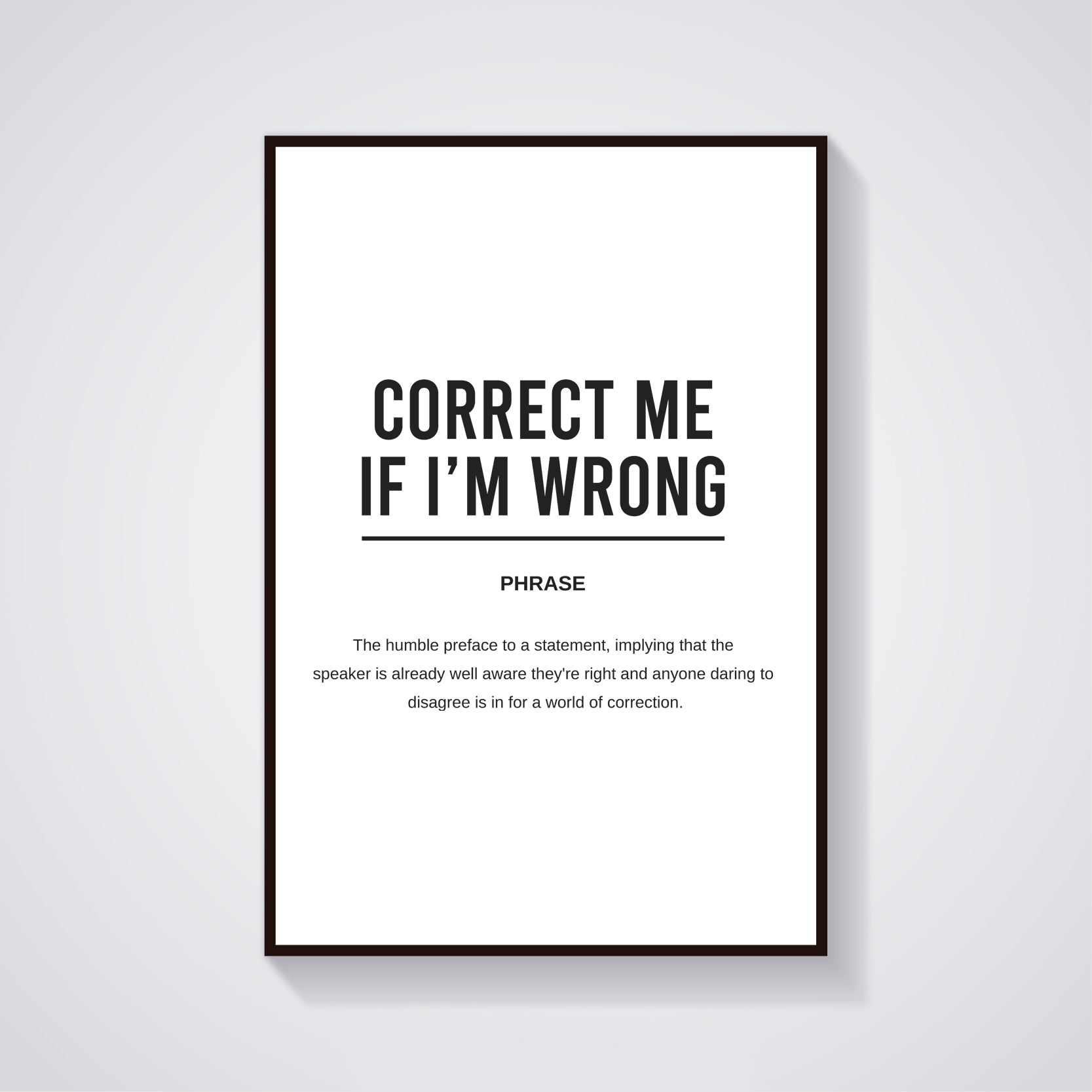 Digital download of printable funny office definition poster titled "Correct Me If I'm Wrong"