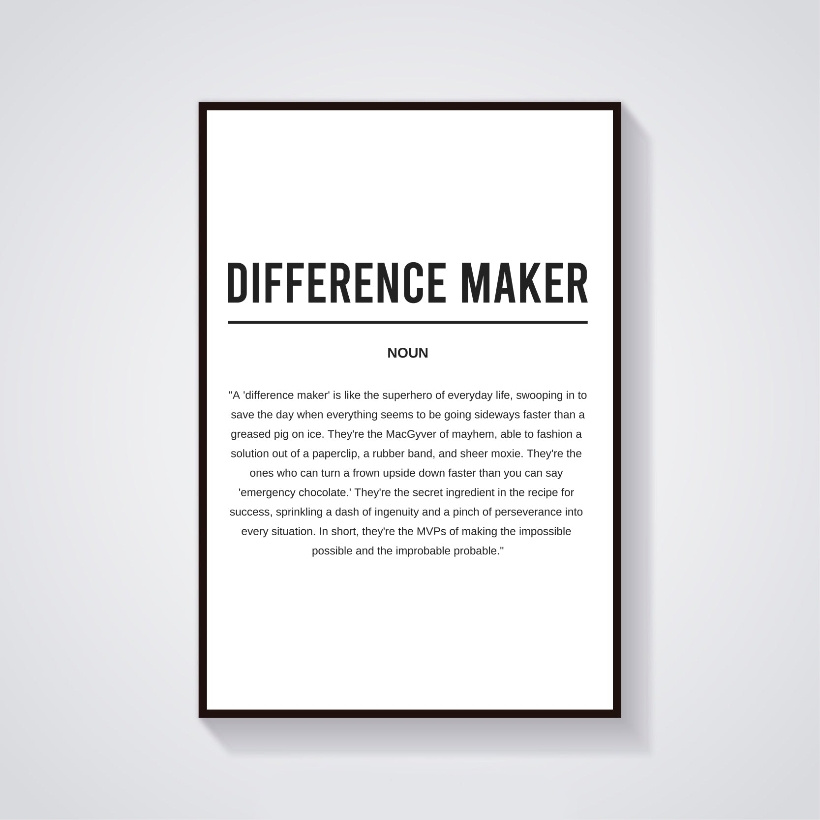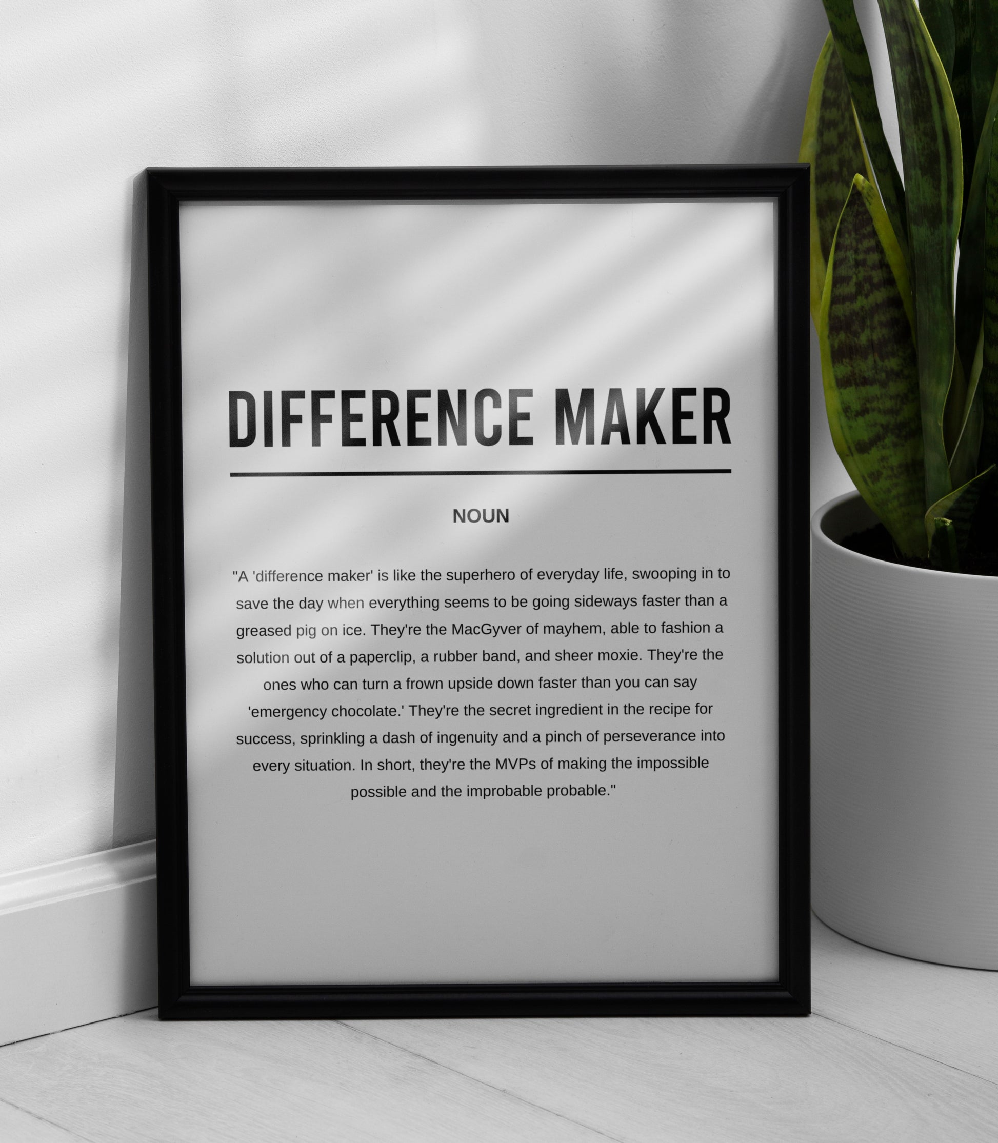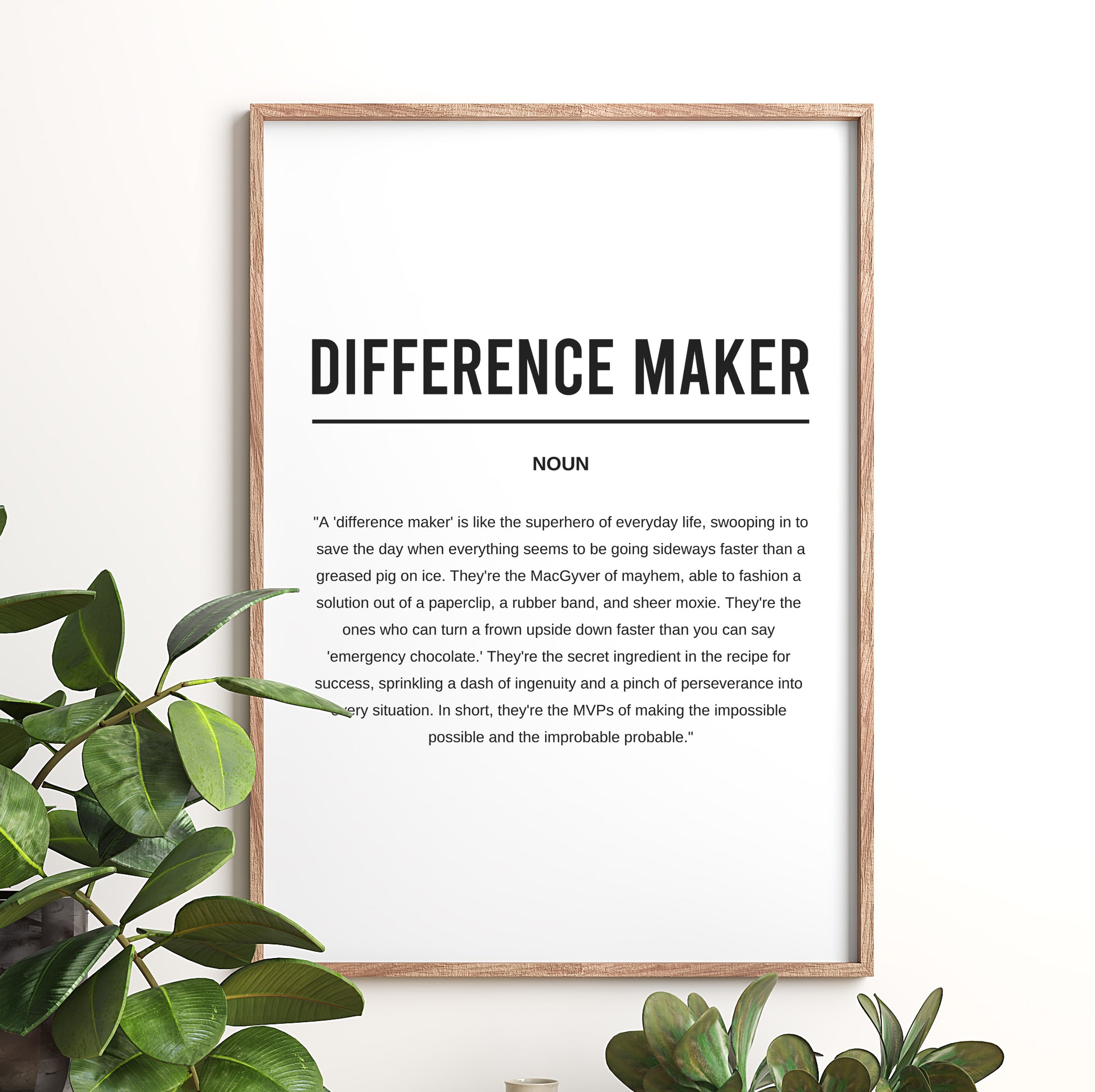 Digital download of printable funny office definition poster titled "Difference Maker"