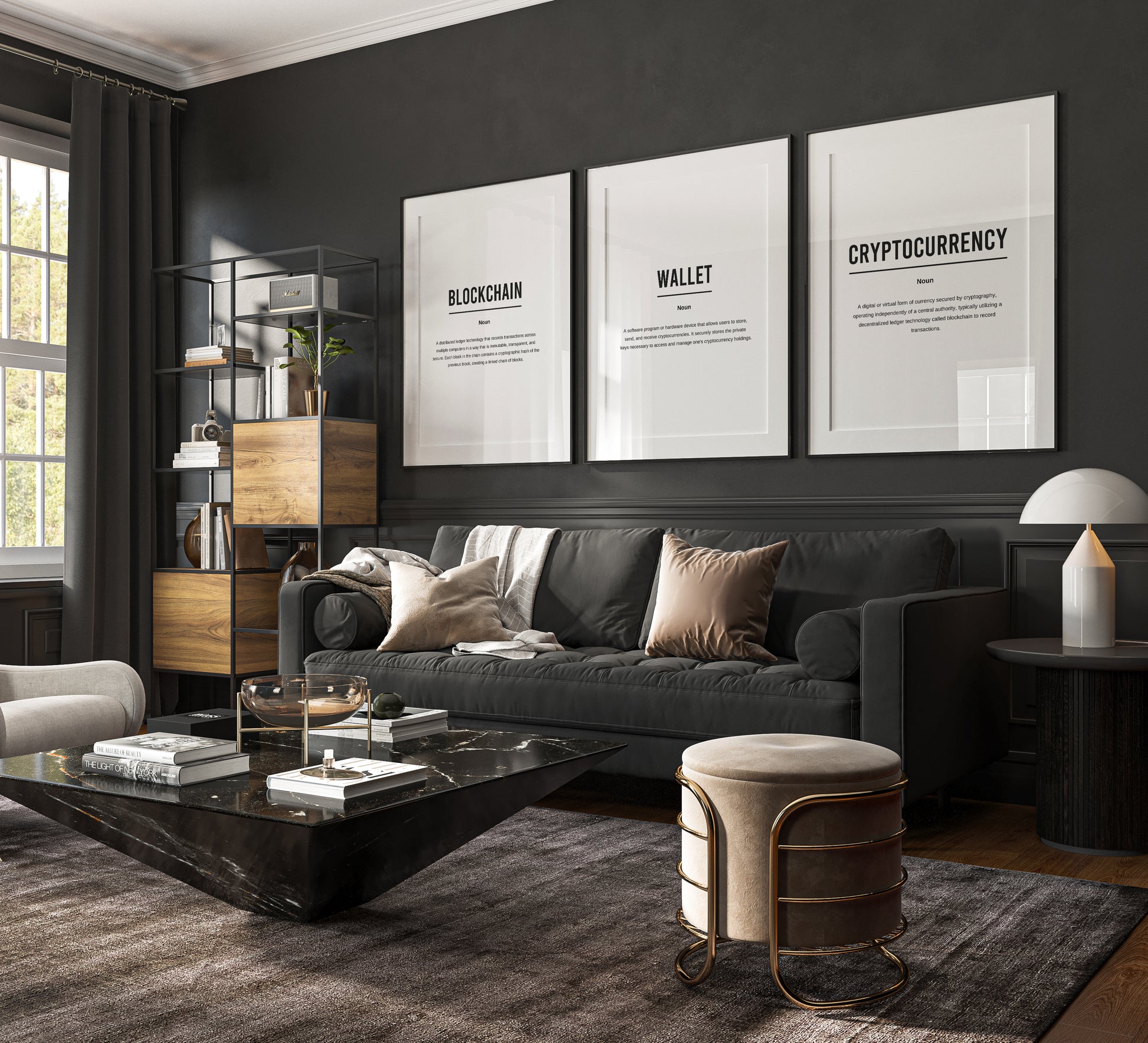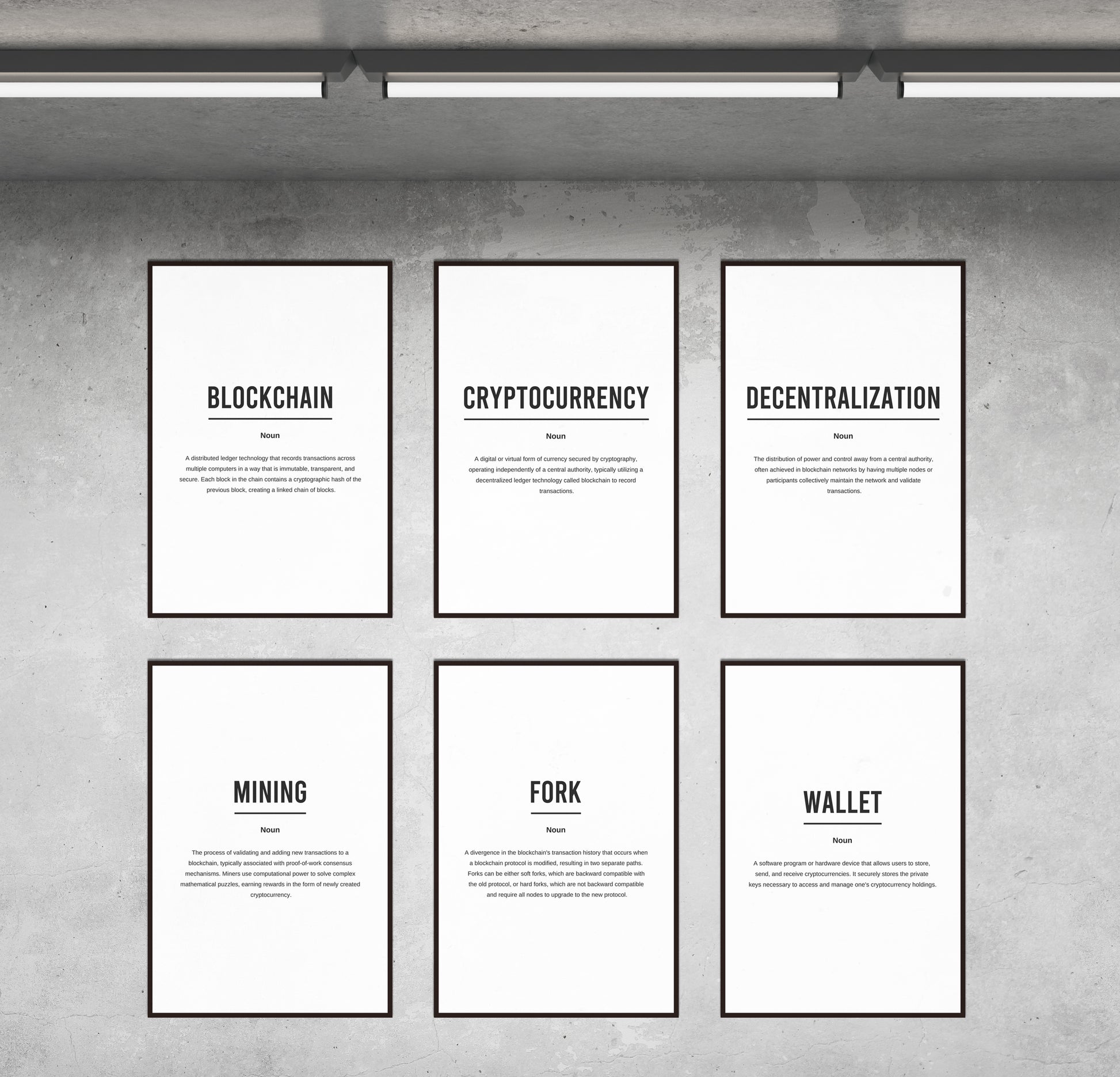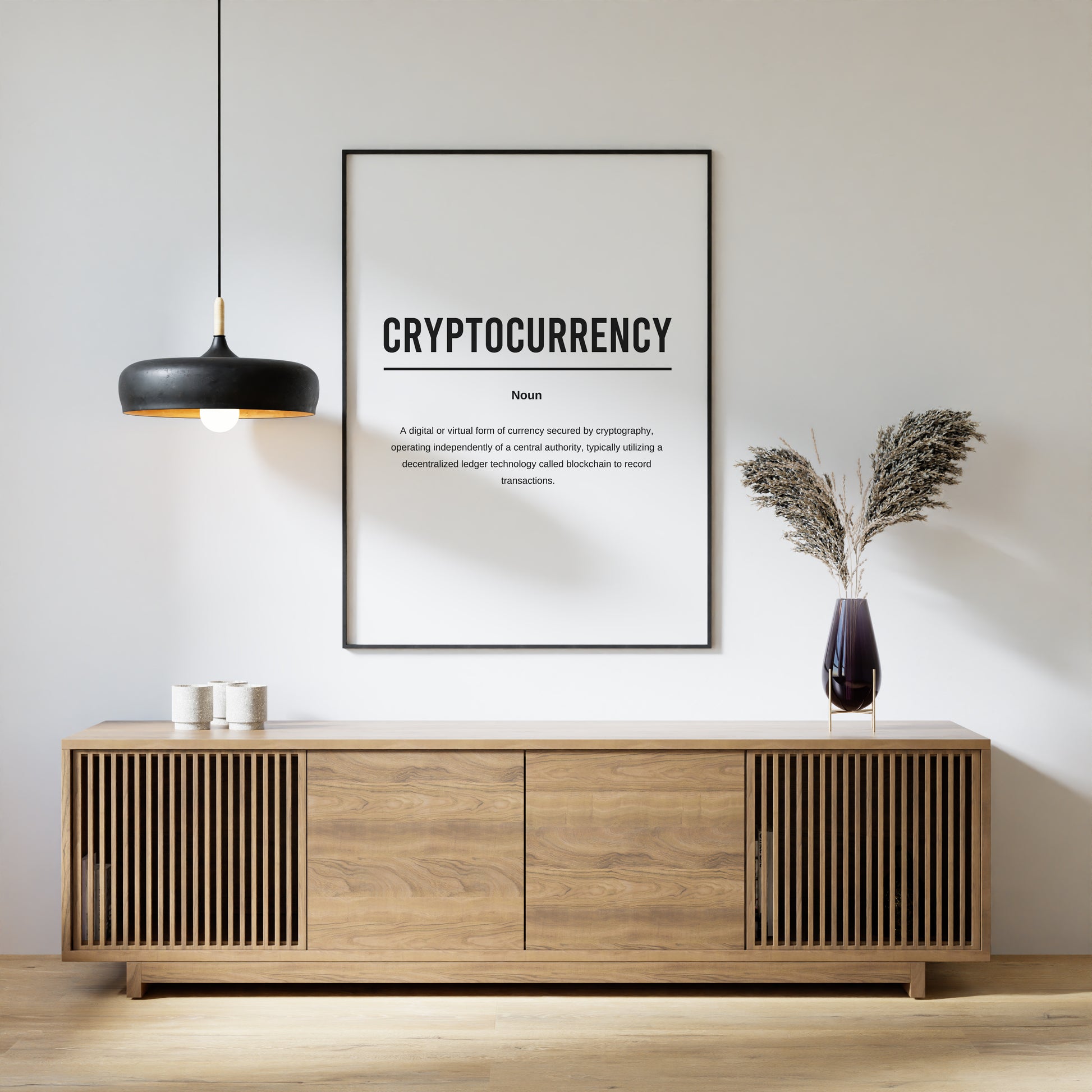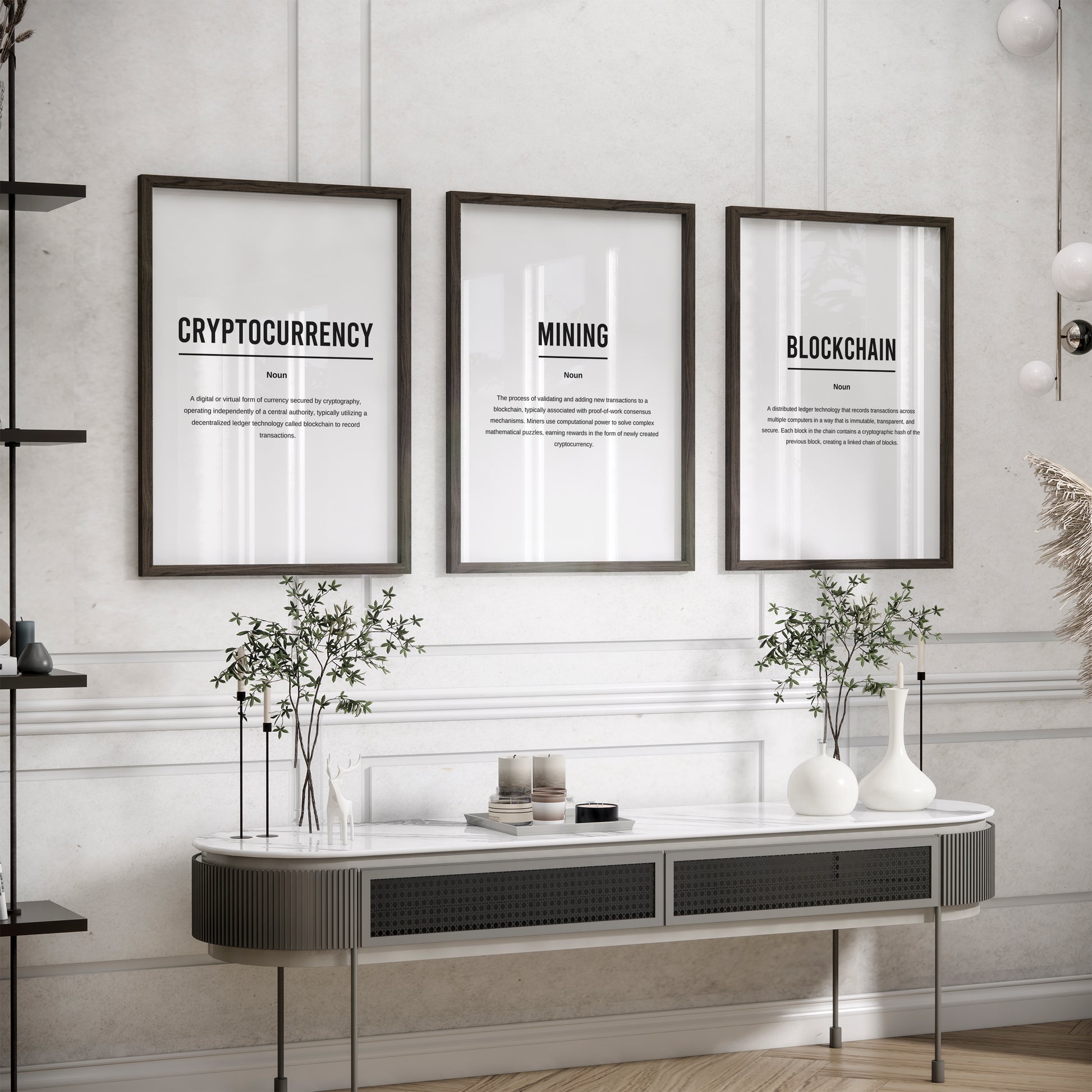 This set of 6 Cryptocurrency definition prints are a great way to decorate your home or office. When grouped together on a wall they give instant impact and really lift the appearance of a boring office space.