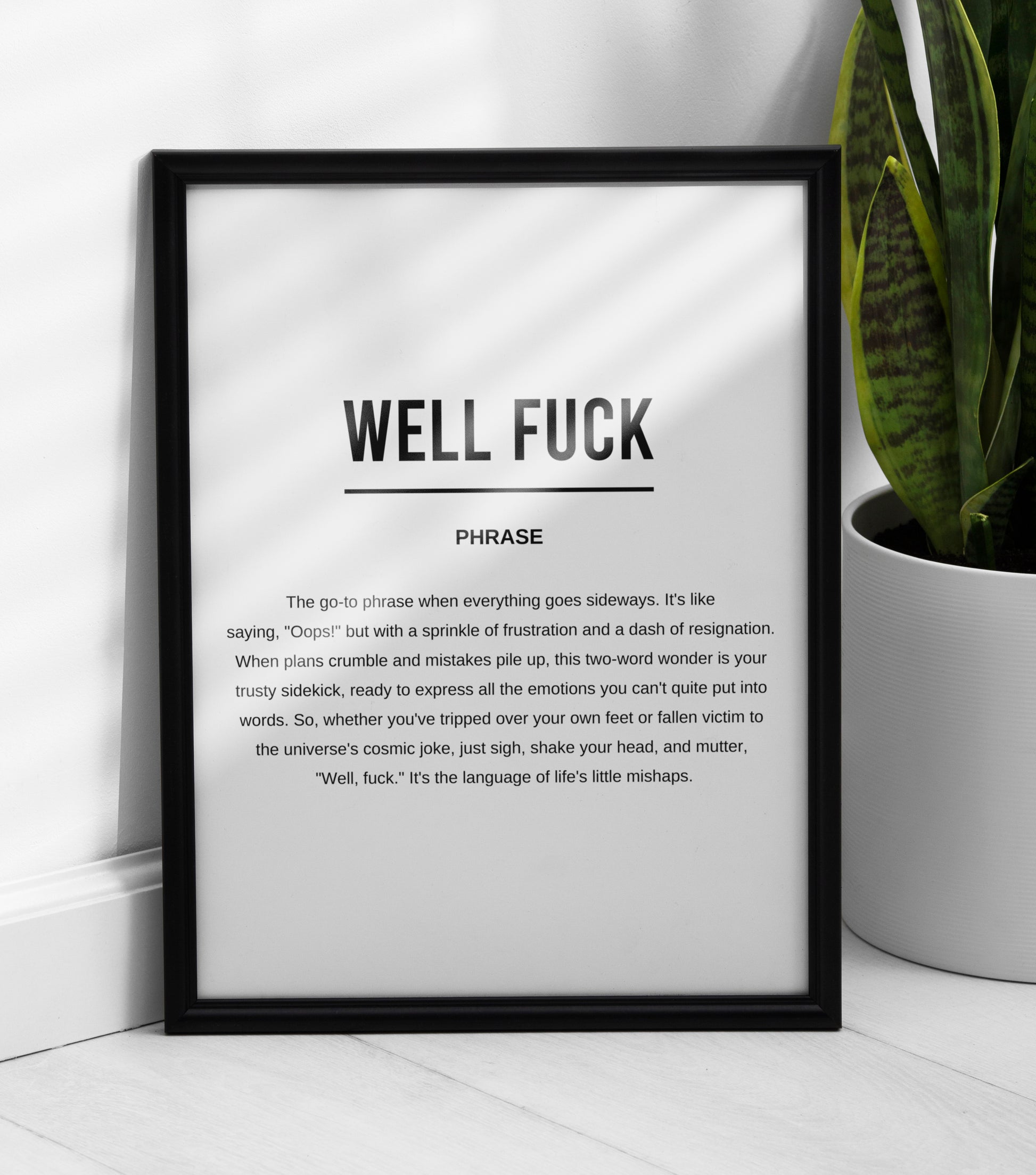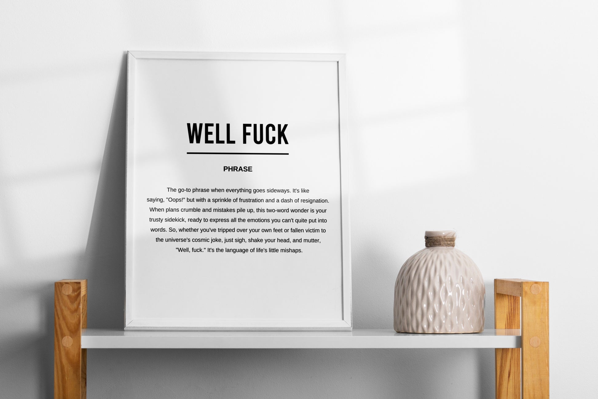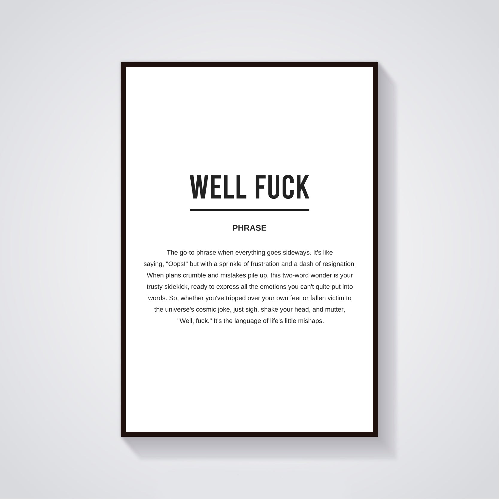 Digital download of printable funny office definition poster titled "Well Fuck"