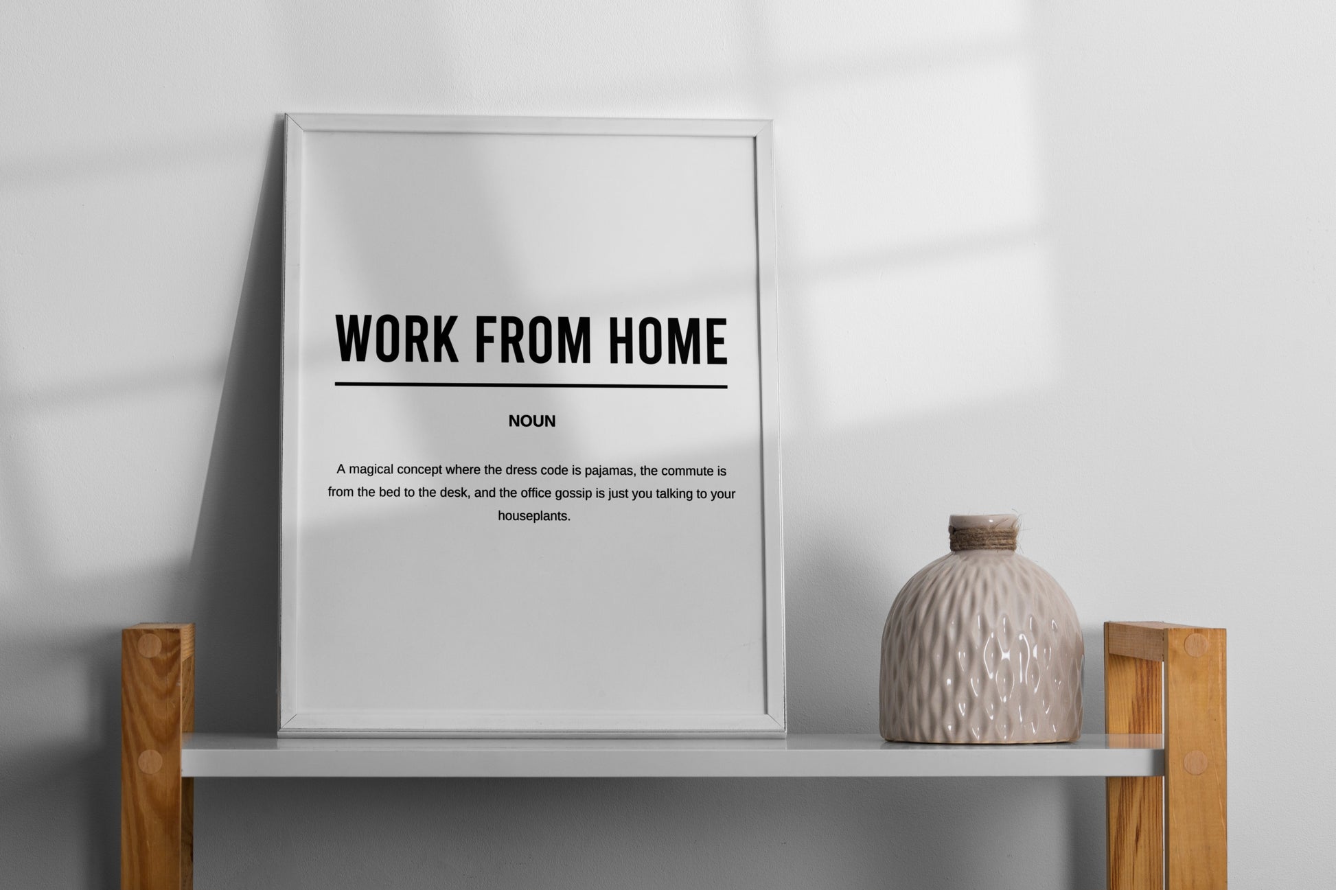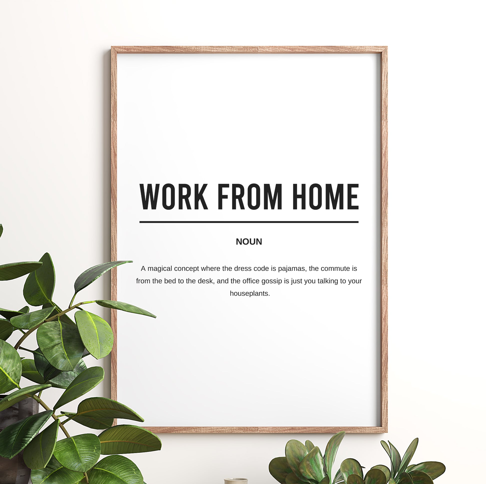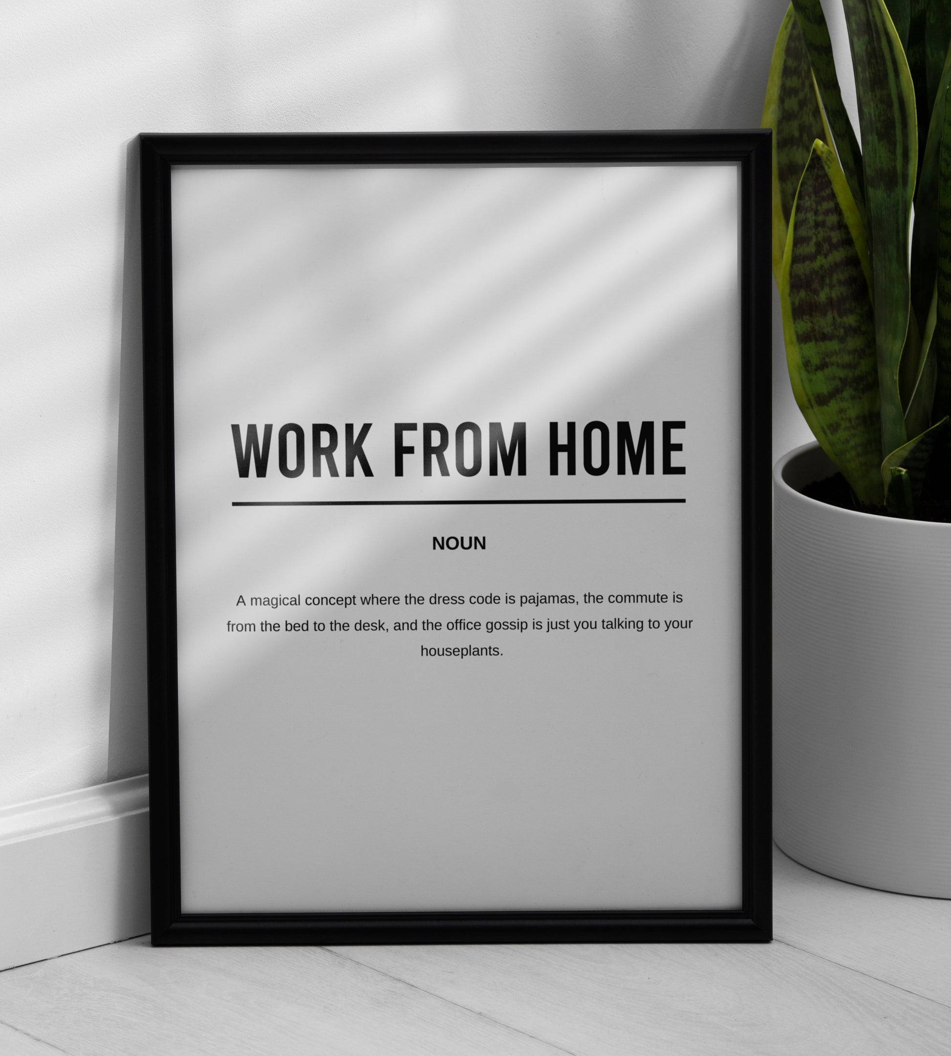 Digital download of printable funny office definition poster titled "Work From Home"