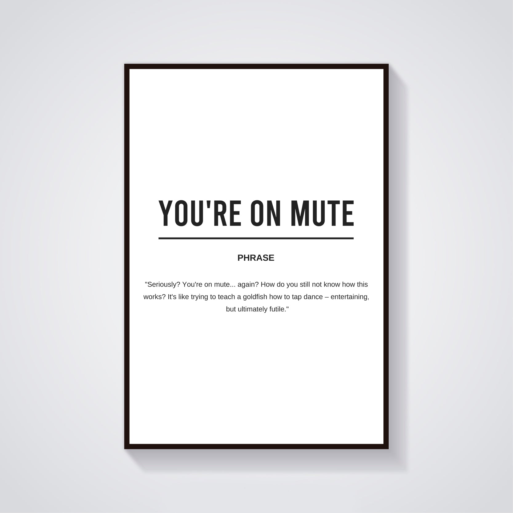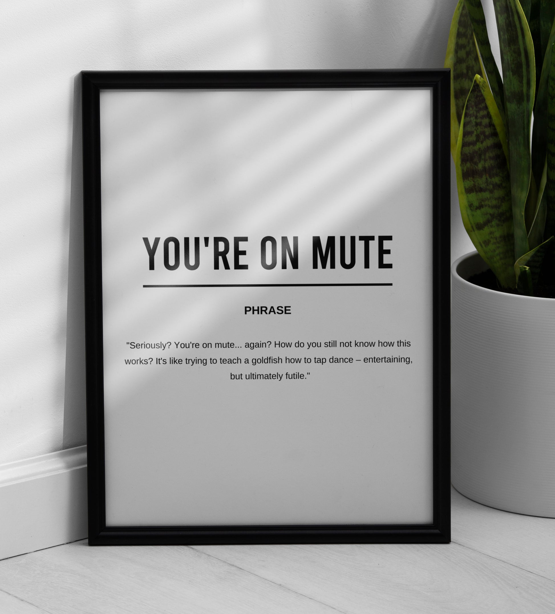 Digital download of printable funny office definition poster titled "You're On Mute"